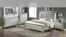 Elevate your sanctuary with this dazzling bedroom collection, where contemporary chic meets timeless charm. The suite boasts a stunning finish, imbuing your space with an air of sophistication and modern luxury. At the heart lies a plush, channel tufted bed that invites you to indulge in comfort, highlighted by integrated LED lighting. Ample storage solutions are provided through sleek, lined dressers and nightstands, where functionality meets finesse.