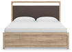 The natural wood tones and clean lines of this bedroom package echo your easygoing style sensibilities. With a warm finish and replicated oak grain, its carefree character lightens up your space. Curved inner corner details soften the look, while sleek bronze-tone hardware modernizes the feel.