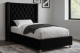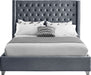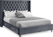 Elegant and eye-catching, the stunning Aiden Bed from Meridian Furniture is the perfect addition to any bedroom. velvet covers the deep tufted design. A beautiful wing bed design is complimented by hand applied nail head details. Strength and beauty is guaranteed with a solid wood frame and stainless steel legs.