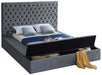 Extend elegance to the bedroom with this Bliss velvet bed. This bed has a rich look, with deeply tufted upholstery along its upper platform perimeter and headboard, ensuring that it is a good fit in modern bedroom themes. Storage rails and footboard are included to ensure maximum versatility, and the bed comes with slats, so you can use it without a box spring. The velvet fabric used in its design makes it easy to integrate alongside other furnishings.