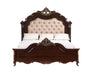 The Constantine Panel Bed by Royal Classics combines timeless elegance with exceptional craftsmanship. This stunning bed includes a headboard, footboard, two side rails, and a bed slat kit. Crafted from a blend of Solid Pine and Fancy Face Birch Veneers, it promises heirloom quality and enduring beauty. The laborious multi-step finish highlights the wood's natural charm, while burnished gold tipping on the intricate carvings enhances its luxurious appeal. The French Traditional design, featuring elaborate 18th-century Rococo style ornamentation, brings a touch of regal elegance to your home. The headboard, upholstered in 100% polyester sateen with crystal button tufting, provides plush comfort and includes USB charging ports on each side for modern convenience. The Constantine Panel Bed is a perfect blend of opulence and functionality, making it a sophisticated centerpiece for any bedroom.