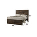 The Elettra bedroom collection provides a commanding presence in any bedroom. This contemporary bed features a rectangular headboard with low profile footboard and uniquely grooved panels, crafted with a transitional look that is an ideal addition to any bedroom. The headboard is accented with raised molding and is finished in a timeless rustic walnut. The bed’s clean line design will go with various styles of case good finishes and will become the focal point for your bedroom.