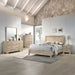 The Miquell bedroom collection provides a commanding presence in any bedroom. This contemporary panel bed features a rectangular headboard with low profile footboard with tapered legs, crafted with a transitional look that is an ideal addition to any bedroom. This fashionable bed will fuse with the surrounding Decor and accent your other bedroom furniture, transforming a room from ordinary into something interesting and sophisticated.