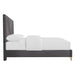 Experience luxury with the Symmetry Upholstered Panel Bed. Crafted from premium woods with a gray marble laminate, it radiates timeless elegance. Gold metal and mylar accents shine against ultra-soft gray fabric, while intricate detailing adds sophistication. The padded headboard, with stylish V-shaped accents, offers cozy support for relaxation. Includes 1 panel headboard, 1 panel footboard, 2 side rails, and 1 slat kit—designed for both comfort and glamour in your bedroom.
