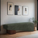 Sleek and sculptural, the Alora polyester fabric upholstered bench is a striking example of minimalist elegance. Wrapped in soft fabric, the elongated seat sits atop a bold brown walnut wooden base, creating a unique juxtaposition of textures. Its asymmetric silhouette adds a touch of modern artistry, making it an ideal statement piece for contemporary spaces.