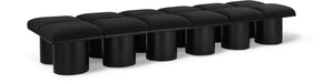 Bring valuable seating and remarkable style to your space with this Pavilion Boucle Fabric Bench, an exquisite balance of style and usability for the entryway, bedroom, and beyond. Crafted from oak veneer with a black finish, this bench has a 4-inch-thick seat cushion that's channel-tufted for a touch of luxury. The bench's columnar bases add a dash of Art Deco design, making it a captivating focal point in any room.