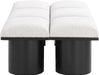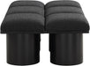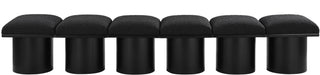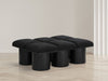 Bring valuable seating and remarkable style to your space with this Pavilion Boucle Fabric Bench, an exquisite balance of style and usability for the entryway, bedroom, and beyond. Crafted from oak veneer with a black finish, this bench has a 4-inch-thick seat cushion that's channel-tufted for a touch of luxury. The bench's columnar bases add a dash of Art Deco design, making it a captivating focal point in any room.