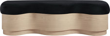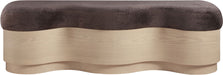 The bold and artistic Savoy velour fur fabric upholstered bench brings a unique wave-like design to your space. Plush velour fur fabric atop creates a soft, luxurious seating experience, while the sculptural wooden base in a natural finish adds a playful yet sophisticated touch. Perfect for those seeking to make a statement, it blends form and function, offering comfort and style in one eye-catching piece.