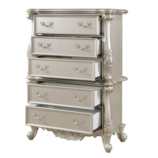 ACMEVersailles - Chest - Antique Platinum FinishProduct Features 5 Drawer Drawer: Side Metal Glide Drawer (3 Ball Bearing, Full Ext.), English Back Dov...