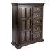 Combined todays modern lifestyle and traditional past with the Big Valley door chest. Crafted with rubberwood solids and wood products, this piece features 5 drawers and 1 door, bottom case dust proofing and fully stained interior drawers. The door opens to reveal 3 adjustable shelves, perfect for user customization.