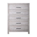 Introducing the Biscayne Five Drawer Chest, meticulously crafted with durable manufactured wood and adorned with an Eco-Friendly decorative laminate for enduring strength and stability. Its Driftwood finish creates a light, airy ambiance, perfect for unwinding at the end of a busy day. The dark iron finish drawer pulls add a contemporary touch, contrasting beautifully with the chest's clean design. Versatile in style, this chest seamlessly blends with various motifs, from coastal to contemporary, farmhouse to urban rustic. Plus, with time-tested drawer construction featuring English dovetail joinery and smooth metal center drawer glides, functionality meets elegance in this essential bedroom piece.
