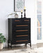 Indulge in the allure of the Kaya Chest by Meridian Furniture. Its captivating design, luxurious black finish and vegan leather handles will elevate any space with effortless elegance. Crafted with precision and durability in mind, this stunning piece becomes the focal point of gatherings, fostering moments of connection and warmth. Embrace sophistication and style with the Kaya Chest, a testament to exquisite taste and timeless beauty.