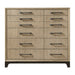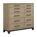 The Sutton Place bedroom collection embodies relaxed contemporary style with a focus on the natural beauty of oak. Crafted with tight-grain, matched oak veneers over hardwood solids, each piece features a warm two-tone finish of caramel atop a cocoa base. Dark bronze bar pulls add subtle contrast, while select pieces showcase asymmetrical drawer configurations for unique visual appeal. The collection is anchored by a framed panel headboard paired with a panel or storage footboard, bringing a sophisticated yet comfortable look to your bedroom space.