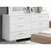 High gloss white finish wraps the Lorimar 6-drawers dresser for a casual yet contemporary look to be added to your home. Keep clothing, accessories and bedding neatly stored away. White finish and horizontal drawer pulls with ball bearing side metal glide. Clean lines increase modern feel of the Lorimar contemporary dresser to create a modern and stylish appearance for your bedroom.