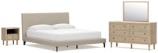 Cielden California King Upholstered Bed with Roll Slats, Dresser, Mirror and Nightstand