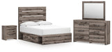 Graystorm Full Panel Bed with Storage, Dresser, Mirror and Nightstand