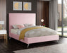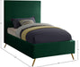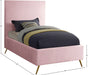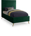 Embolden your bedroom space with this beautiful and colorful Jasmine Bed. A pop of stunning color and chic, sleek velvet upholstery set this bed apart as a distinctively elegant option for your bedroom sanctuary. The contemporary design meshes well with modern decor, making it the ultimate choice for the uber-modern home. Metal legs with a retro slant lend this bed a finished look. Because the bed requires no box spring or foundation, it offers a svelte, minimalist profile.