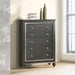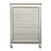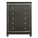 The Kaitlyn chest provides a commanding presence in any room. Crafted with a transitional look that is an ideal addition to any bedroom, the chest is accented with textured front and a crystal-like sparkling trim. Its crystal-like trimming creates dazzling glow for your master bedroom. Multiple storage drawers allow you to keep your sleeping area nicely neat.