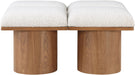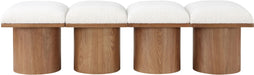 Bring valuable seating and remarkable style to your space with this Pavilion boucle fabric bench, an exquisite balance of style and usability for the entryway, bedroom, and beyond. Crafted from oak veneer with a walnut brown finish, this bench has a 4-inch-thick seat cushion that's channel-tufted for a touch of luxury. The bench's columnar bases add a dash of art deco design, making it a captivating focal point in any room.