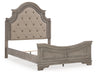 | Details | B751B2: Includes queen panel headboard, footboard and rails, Made with acacia wood, birch and acacia veneers, engineered wood and cast resin components, Antiqued gray finish, Ornately shaped headboard with inset upholstered cushion, Foundation/box spring required, sold separately, Mattress not included, sold separately, Assembly required, B751B1: Includes dresser and mirror, Made with acacia wood, birch and acacia veneers, engineered wood and cast resin components, Two-tone finish; antiqued gray body with a rich, deep walnut brown finish on top, Dark bronze-tone bails and knobs, 7 smooth-gliding drawers with dovetail construction, Framed drawer fronts , Overlay decorative corbels, Mirror attaches to back of dresser, Assembly required, | |