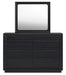 | Details | B768B2: Includes headboard, footboard and rails, Made with pine solids, veneers and engineered wood substrate, Textured black wood stain with waxy topcoat, Extra wide rails for a bench-like wrap around, Foundation/box spring required, sold separately, Mattress available, sold separately, Assembly required, B768B1: Includes dresser and mirror, Made with pine solids, veneers and engineered wood substrate, Textured black wood stain with waxy topcoat, Hardware-less design, 6 drawers with fully finished interiors, dovetail construction and ball-bearing side glides (top drawers felt lined), Mirror attaches to back of dresser, | |