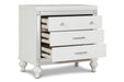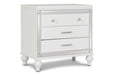 The Valentino 3 Drawer Nightstand is a luxurious addition to any bedroom. Crafted from a blend of manufactured and solid woods, it is built to last while maintaining its distinctive appeal. Its glamorous design includes a gleaming finish, mirrored trims, crystal-studded drawer pulls, and alligator-embossed inlays, embodying the essence of Hollywood glamour. In addition to its stylish appearance, this nightstand offers practicality with its thoughtful details. The heirloom-crafted English dovetailed drawers boast finished interiors to prevent snags and roll smoothly on full-extension ball-bearing glides, ensuring easy access to your belongings. This nightstand provides an abundance of storage with its three spacious drawers, making it perfect for keeping bedside essentials organized and within reach. With its combination of durability, elegance, and functionality, the Valentino 3 Drawer Nightstand is a must-have piece for creating a glamorous bedroom retreat.