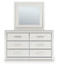 | Details | PCB3381B13: Includes upholstered headboard, footboard, rails and roll slats, Made with engineered wood frames and solid wood components, Polyester upholstery over foam cushioning, Bed does not require additional foundation/box spring; accommodates most zero clearance adjustable bases, Mattress available, sold separately, Minor assembly required, PCB3381B1: Includes dresser and mirror, Made with engineered wood (MDF/particleboard/plywood) and decorative laminate for the right balance of affordability and durability, Matte white finish with subtle replicated wood grain, Decorative laminate replicates natural or man-made material surfaces with consistent color, pattern and texture , Chrome-tone accents, Large-scale chrome-tone handles with faceted details, 6 smooth-gliding drawers, Drawer interiors are lined with a faux linen laminate for a clean, finished look, Mirror attaches to back of dresser; can also be mounted on wall horizontally or vertically, Safety is a top priority, clothing storage units are designed to meet the most current standard for stability, ASTM F 2057 (ASTM International), Drawers extend out to accommodate maximum access to drawer interior while maintaining safety, Minor assembly required, PCB3381-92: Made with engineered wood (MDF/particleboard/plywood) and decorative laminate for the right balance of affordability and durability, Matte white finish with subtle replicated wood grain, Decorative laminate replicates natural or man-made material surfaces with consistent color, pattern and texture, Chrome-tone accents, Large-scale chrome-tone handles with faceted details, 2 smooth-gliding drawers, Drawer interiors are lined with a faux linen laminate for a clean, finished look, Slim profile USB-A and USB-C charging ports, Power cord included; UL Listed, Minor assembly required, | |