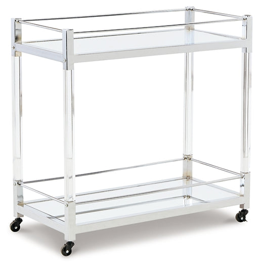 Signature Design by Ashley®Reflect your love for contemporary style with this bar cart. With two shelves made with mirrored glass, it adds both light and a touch of glam to y...