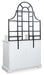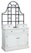 | Details | Includes baker's rack base and hutch, Made with hardwood solids, mango wood veneer, MDF substrate and metal , Antiqued white finish, Frame with black finish, Dark pewter-tone knobs , Metal hutch with 2 wood shelves, 2 single-door cabinets (each with one shelf), 3 drawers with felt lining , 6 small hooks for hanging mugs and small accessories, Assembly required | |