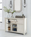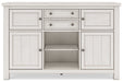 This dining server is sure to impress come mealtime. With its antiqued white finish and planked effect cabinet doors, farmhouse-style storage has never been so fashionable. All that’s missing is you and your family.