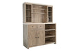 Rustic Wood Bar Cabinet With Hutch - Light Gray / Wheat