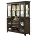 - Features: LED Touch Light, Glass Doors, Hutch w/Mirrored Back Panel, Raised Molding Trim