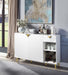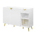 The sleek clean-lined table Gaines dining table offers subtle a hint of glam, the base offers a touch of gold to enhance the textured vertical lined pedestal. The white high gloss finish reflects light and makes any dining space appear larger and grander. Ample enough to showcase an impressive spread for all your guests to enjoy.