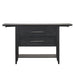 The Sable Crest Drop Leaf Server is a versatile and durable piece designed to enhance both the style and functionality of your dining space. Built from solid Rubberwood and premium engineered woods, and finished with real Oak wood veneers, it offers the lasting strength of real wood combined with enduring beauty. The sophisticated ebony sable finish, applied through a meticulous multi-step brush technique, highlights the natural grain and unique characteristics of the wood, adding depth to your dining area. The transitional design blends contemporary clean lines with subtle farmhouse charm, making it suitable for a variety of interior styles. This server is not only stylish but also highly functional, featuring two spacious storage drawers, an open shelf for easy access, and an extendable leaf that transforms it into a convenient buffet server. Its compact size and adaptable design make it perfect for use in entryways and hallways as well, offering a practical and attractive solution for any space that needs a touch of both style and utility.