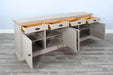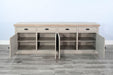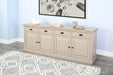 A versatile and stylish addition to your living or dining space that effortlessly combines modern design with practical storage. This server cabinet, featuring a sleek grey finish, adds a contemporary touch to your decor. With four spacious drawers and two cabinets, it provides ample storage for organizing your essentials. The drawers are designed for easy access, and the cabinets with adjustable shelves offer customizable space to accommodate various items. The clean lines and neutral color make this server an adaptable piece, blending seamlessly with different interior styles.