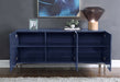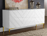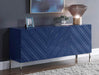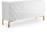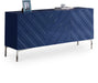 Organize the dining room with the help of this Collette Sideboard Buffet. This Meridian Furniture buffet has a rich stainless steel base that adds a gleaming, modish vibe and chevron lacquered exterior for a contemporary finish. Use the amply sized top for holding collectibles, photos, and other knickknacks.