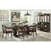 Update your space with the stylish Jameson dining room collection. This formal group combines the look of rich espresso with the understated styling of traditional design. Brown undertones play to the look of the rectangular dining table with removable leaf. The trestle base with double pedestals add perfectly to the table's trend forward style. Adding the hutch and buffet to complete its trend forward style.