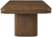 Fluted edges, sculptural bases, and a deep finish give the Mohari solid wood dining table its bold, architectural presence. Crafted from a mix of solid wood, oak veneer, and MDF, each piece showcases unique grain variations and natural wood knots. Whether hosting a dinner party or making a design statement, this art deco-inspired table delivers impact from every angle.