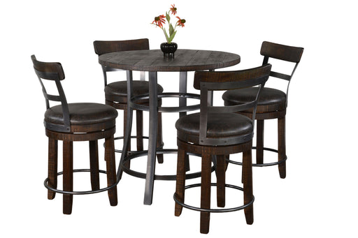 Sunny DesignsThis Homestead pub table was built with mahogany and mindi solids and veneers. Its design suggests contemporary with industrial trades and its meta...