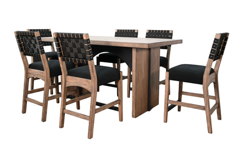 Bring modern elegance to your home with this eye-catching rectangular dining table. Featuring a warm wood finish and a striking black arched accent...