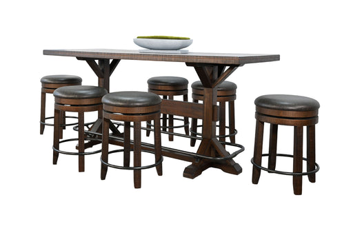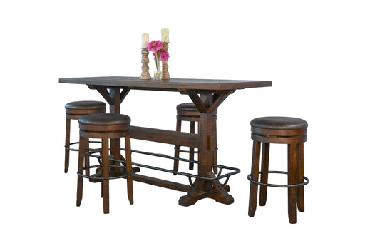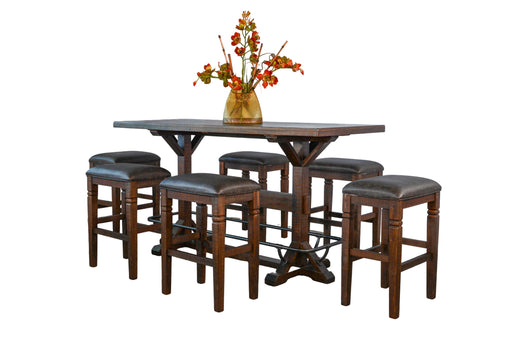 Sunny DesignsThis Homestead pub table was built with mahogany and mindi solids and veneers. Its design suggests contemporary with industrial trades and its meta...
