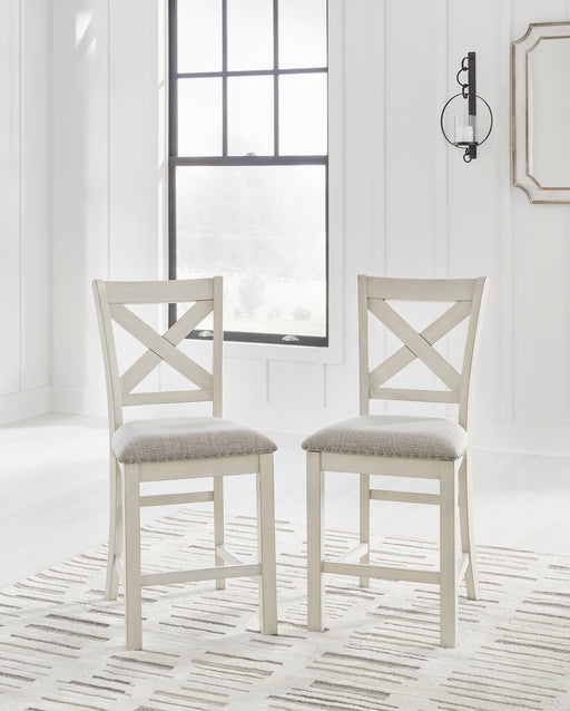 Signature Design by Ashley®Consumer's ChoiceThis counter height bar stool is sure to impress come mealtime. With its white finish and light gray upholstery, farmhouse-style seating has never ...