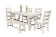 Indulge in the perfect blend of modern aesthetics and rustic charm with our dining table set. The table boasts a contemporary appeal with its rustic weathered finish, adding a touch of sophistication to any dining space. Enhanced stability is achieved through gunmetal stretchers, which not only provide support but also serve as striking accents, completing the overall design with a touch of industrial elegance.