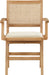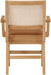 Sit back and relax in this armchair from Meridian Furniture's Abby collection. Featuring a frame crafted from solid wood with a natural finish and a vegan leather seat, this chair is both sturdy and durable so it will last you for years to come. A natural cane backrest seamlessly blends with the chair's natural-finished frame, adding a sense of warmth and charm that ensures it will stand out among all your furniture.