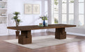 Wow guests with the artsy charm of this Anzio oak dining table. This table has a decidedly utilitarian design that makes it a no-brainer for minimalist decor while its simple lines and unexpected style elements ensure that it's the center of attention in your modern dining area. Oak veneer construction lends a rugged, rustic vibe to the table, which comes equipped with two leaves so that you can make it smaller or larger depending on the crowd you're entertaining.