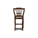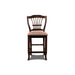 The Bixby Wood Splat Back Counter Height Chairs, available as a set of two, blend traditional elegance with modern functionality, making them a perfect addition to any dining area. Expertly crafted from solid Rubberwood, these chairs are designed for durability while highlighting the timeless beauty of natural wood. The rich espresso cherry finish, meticulously applied through a multi-step process, enhances the natural grain of the wood and adds a subtle, sophisticated sheen. Featuring a splatted back with a gracefully curved top rail and artfully fanned vertical slats, these chairs effortlessly complement both formal and casual dining settings. The high-density foam cushions ensure exceptional comfort, while the easy-care 100% polyester upholstery offers durability and practicality. Brass nailhead trim adds a touch of refined craftsmanship, making these chairs a stylish and functional choice for your dining space or kitchen counters.
