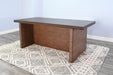 - Two-tone wood shades—darker tabletop with lighter leg panels—for visual contrast