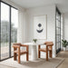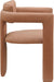 Step into effortless sophistication with the cognac vegan leather dining chair, where sleek design meets unparalleled comfort. Draped in soft vegan leather, this chair boasts a luxurious texture that enhances both style and coziness. Perfect for contemporary spaces, the fully upholstered frame offers a seamless, polished appearance, making it ideal for formal dinners or relaxed, everyday dining.