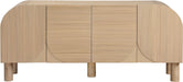 Enhance your dining room with the Casablanca Sideboard Buffet. Crafted with a rich finish and ash wood veneer construction, it exudes timeless elegance with its art deco design. Concealed behind its doors lies ample storage for your formal dinnerware, flatware, and linens, keeping them organized and easily accessible. Designed for versatility and easy storage, this piece gives you a stylish surface for displaying dishes or serving food during special occasions. Add valuable functionality and beauty to your dining area with this sleek and handsome sideboard buffet.