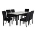 The Celeste Dining Set is a picture of modern luxury and enduring craftsmanship. This set includes a striking 64-inch dining table with an espresso base and a faux marble top, accompanied by four exquisite velvet chairs. Crafted from solid Rubberwood and manufactured wood components, the dining set is designed for longevity, ensuring a timeless addition to your dining space. The glossy finish on the tabletop provides heat and water resistance, ensuring easy cleaning and protection from wear. The white and gray veined faux marble top, set against deep espresso legs, creates a contemporary and glamorous ambiance. Luxurious seating awaits with the soft and durable 100% polyester velvet fabric covering sumptuous memory foam cushions, offering both comfort and easy maintenance. Tailored for elegance, the rich and luxurious colors of the velvet chairs are enhanced by silver nailhead trim, providing a sparkling final touch to this impeccable dining set. Enjoy the fusion of contemporary glamour and enduring quality with the Celeste dining collection.